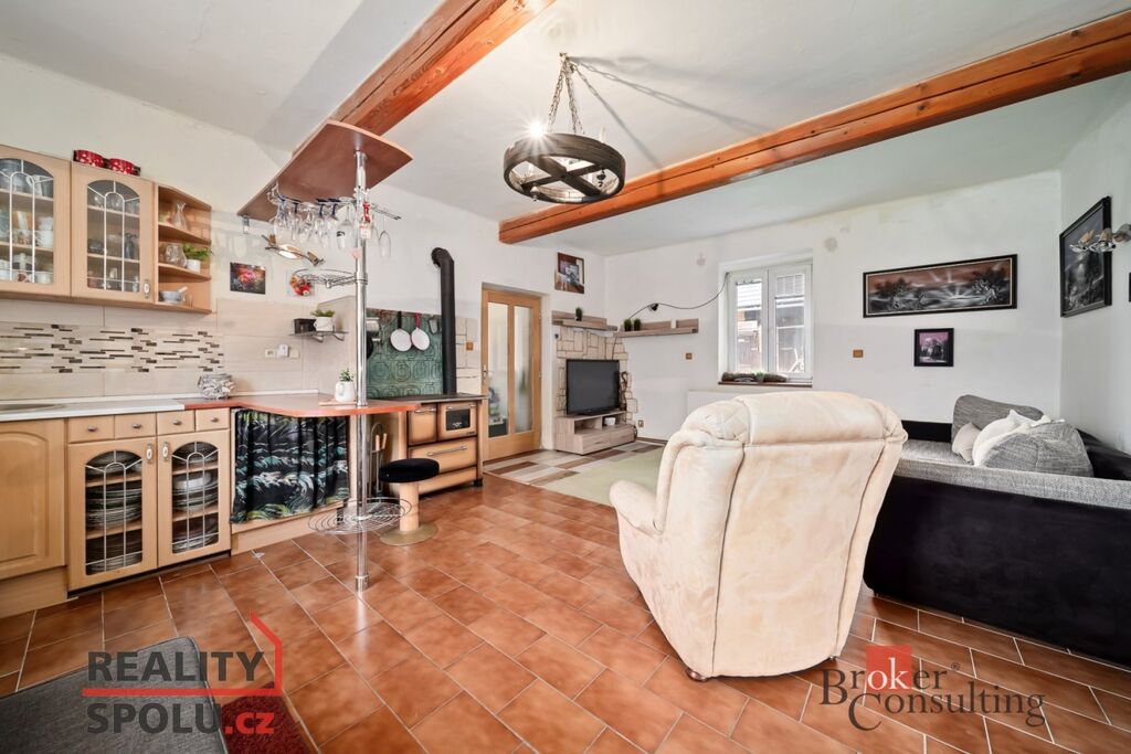 Hlavní dům je velký, obytný v obou podlažích a po postupné rekonstrukci – nová okna, rozvody vody, elektřiny, odpady, podlahy i střecha.