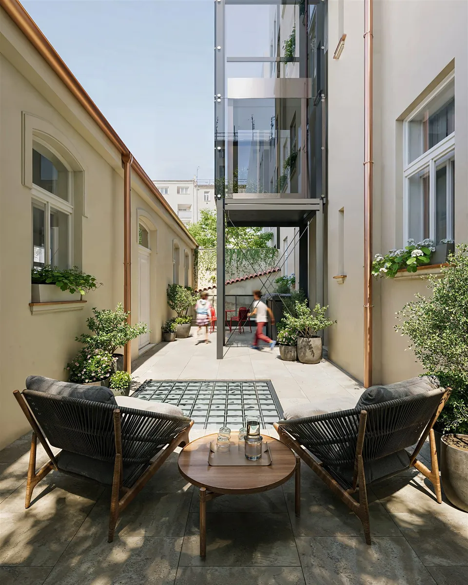 Dům projde kompletní rekonstrukcí. Vzniknou reprezentativní společné prostory, moderní výtah, repasované kamenné schodiště se zdobným zábradlím a nové technické zázemí. Rezidentům bude k dispozici sauna, fitness, kolárna a kočárkárna, ve vnitrobloku pak klidné místo k posezení mezi zelení. Budova stojí v klidném úseku ulice Bělehradská, jen pár kroků od tramvajové zastávky Nuselské schody. V okolí jsou oblíbené podniky jako Solo Bakery, Ô-mai coffee, Las Adelitas nebo pizzerie Da Pietro, v docházkové vzdálenosti také parky Folimanka a Grébovka. Nechybí zde lékárny, školy, fitness centra ani běžné služby. Na metro I. P. Pavlova se dostanete tramvají za čtyři minuty, do centra během deseti.