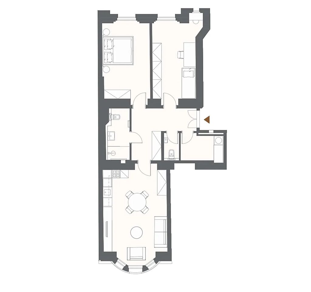Severně / Jižně orientovaný byt o dispozici 3+kk a podlahové ploše 88,9 m² je součástí nového rezidenčního projektu Bělehradská 29, který vzniká kompletní rekonstrukcí novobarokního činžovního domu z roku 1910. Nachází se na pomezí Vinohrad a Nuslí – v živé čtvrti s kavárnami, službami i zelení, jen minutu od tramvajové zastávky Nuselské schody. Dokončení je plánováno na 3. čtvrtletí roku 2026. Půdorys bytu v 2. podlaží zahrnuje obývací pokoj s přípravou na kuchyni, dvě ložnice, vstupní chodbu, praktickou komoru, koupelnu se sprchovým koutem a samostatnou toaletou. K jednotce náleží také sklepní kóje. Vybavení zahrnuje dubové podlahy, dřevěná špaletová okna s dvojsklem, elegantní interiérové dveře, koupelnu v nadčasovém designu se sanitou značek Laufen a Grohe a decentně řešená otopná tělesa a elektroinstalaci, která neruší celkový výraz interiéru. Byt bude dokončen v provedení fit out – připravený k okamžitému nastěhování.