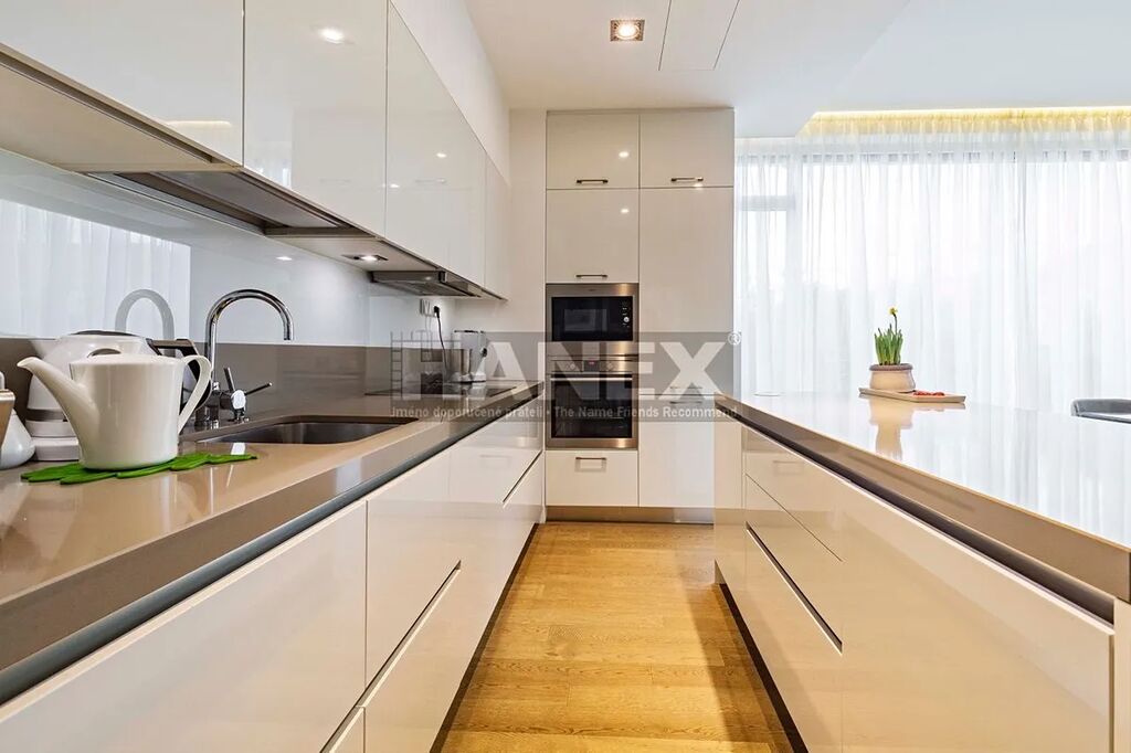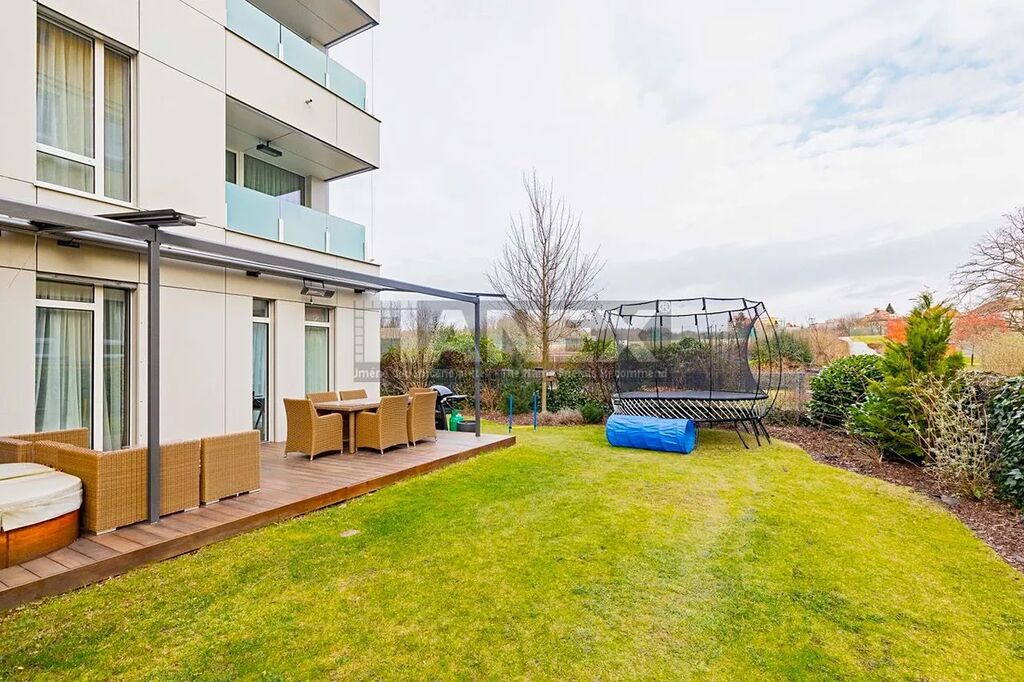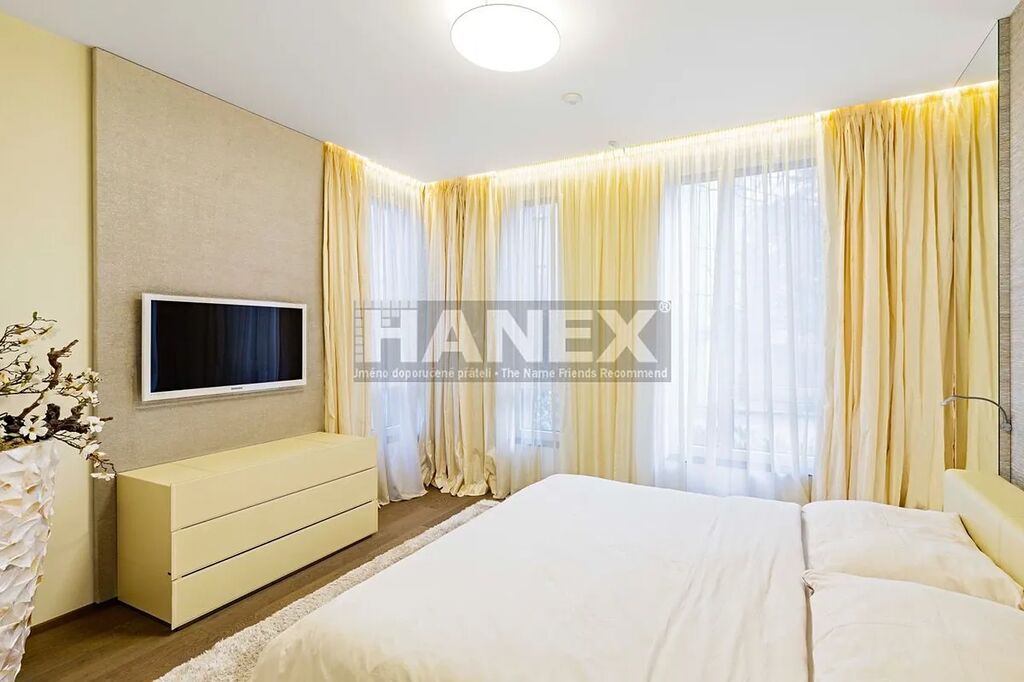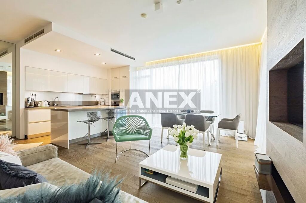 Moderní designový byt 3+kk (99 m2) s velkou privátní zahradou (200 m2), parkovacím stáním a sklepem v luxusní rezidenci v Praze 4 – Hodkovičkách. Nadstandardně vybavený a zařízený byt vás nadchne svou velkorysou dispozicí a vzdušností. Plně klimatizovaný byt nabízí 2 ložnice, prostornou šatnu – walk in closet, koupelnu s vanou, sprchový kout a toaletou a samostatnou toaletu. Z obývacího pokoje (40 m2) s kuchyňským koutem je přímý vstup do zahrady. Kuchyňská linka s ostrůvkem je vybavena kvalitními vestavěnými spotřebiči. Luxusní bydlení doplňuje krytá terasa s vířivkou. Předokenní žaluzie. Orientace bytu jih a východ.