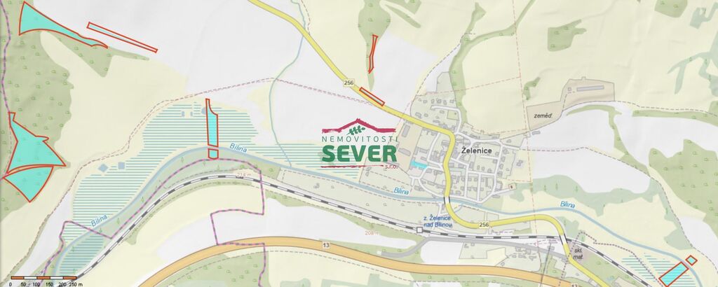 Nemovitosti SEVER vám zprostředkují koupi souboru pozemků v katastrálním území Želenice, okr. Most. Pozemky jejichž celková výměra je 55007m2, jsou složeny z pozemků ostatní plocha, vodní plocha a orná půda. Ostatní plocha tvoří 44621m2, vodní plocha 9552m2 a orná půda 834m2. Pozemky jsou prodávané pouze dohromady jako celek. Pozemky se nacházejí v různých částech katastrálního území Želenice, nejsou sousedící, prodávané pozemky jsou v mapce označeny červeným orámováním.
