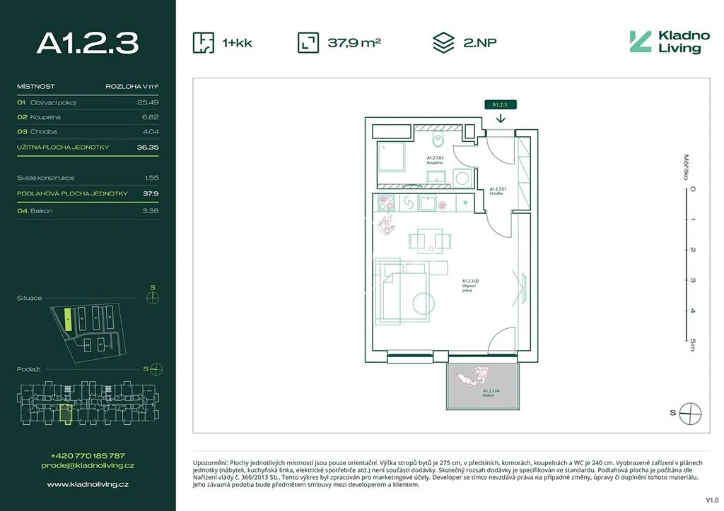 Nabízíme ke koupi moderní byt 1+kk o podlahové ploše 37,9 m² s balkonem 3,4 m² v rezidenčním projektu Kladno Living, který vzniká v jedné z nejatraktivnějších lokalit města Kladno – Kročehlavy. Tento nový developerský projekt představuje jedinečnou příležitost pro ty, kteří hledají nové byty v Kladně nebo investici do nemovitosti s vysokým potenciálem zhodnocení.