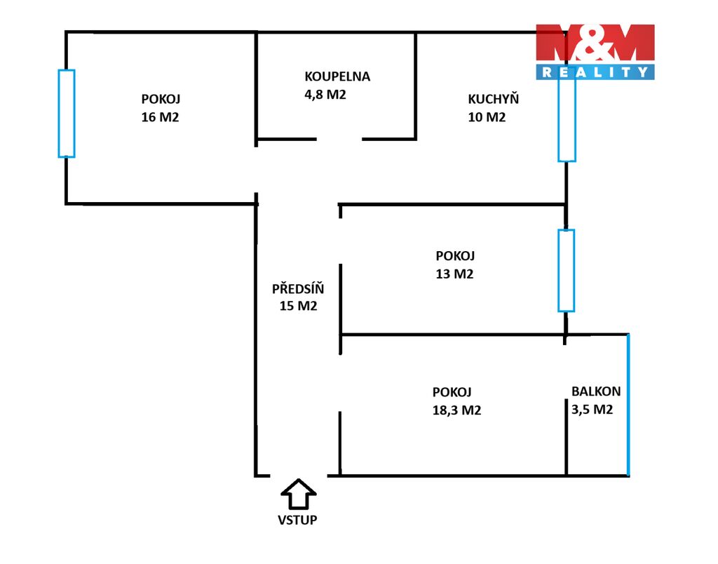 Byt je velmi dobře dispozičně řešený – nabízí prostorné neprůchozí pokoje, velkou kuchyň, koupelnu s rohovou vanou a toaletou a také balkon, který je ideální pro relax u kávy či menší balkonové zahradničení.