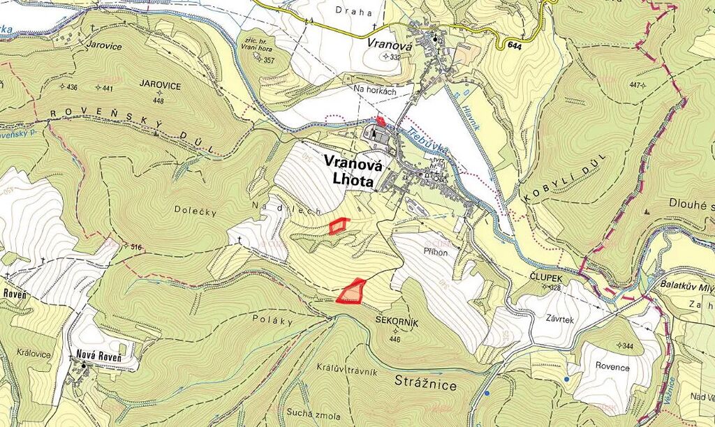 K prodeji jsou pozemky parc. č. 157/1, 339/6, 339/15, 339/17, 386, 387/1 a 387/2 zapsané na LV 625 k KÚ Vranová Lhota. Obec leží v okrese okres Svitavy v Pardubickém kraji.