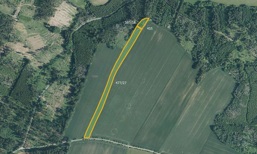 Pozemky se nacházejí na parcelách č.: 199/28, 279/68, 279/159, 455, 477/27 a 563/18. Celková výměra činí 26 367 m².