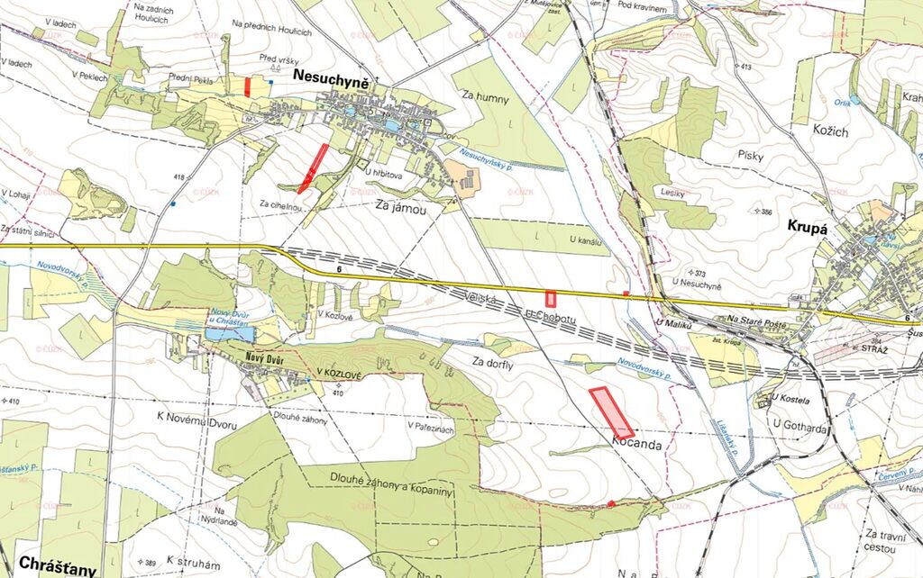 V katastrálním území Nesuchyně, okres Rakovník, nabízím k prodeji vlastnictví na souboru zemědělských pozemků zapsaných na listu vlastnictví č. 322. Jedná se o parcely č. 4082, 4050, 4035, 4016, 3177, 3176, 2955, 2954, 2953 a 2951.