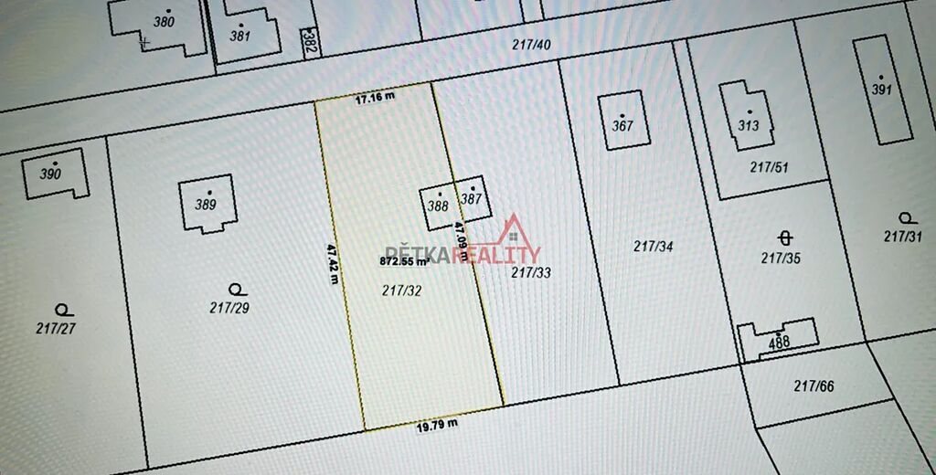 • parcela č. 217/32 + st. 388 se stojící chatou č. ev. 262