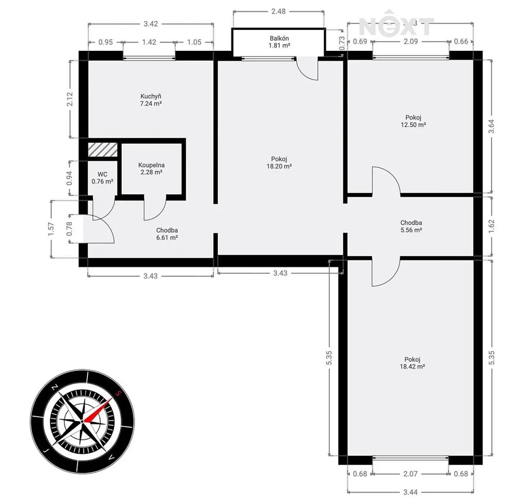 Prodej bytu 3+1 s balkonem, o rozměru nyní 74 m2 obytné plochy v roce 2026 díky realizaci zvětšení balkonů 79 m2, v osobním vlastnictví v ulici 17.listopadu, v městě Zábřeh.