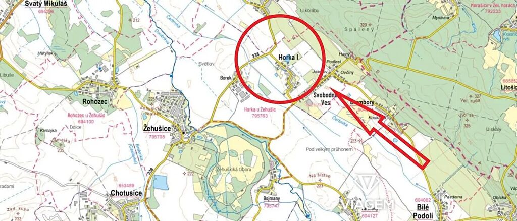 Pozemek se nachází na klidném okraji obce Horka v blízkosti rodinných domů. Pozemek umožňuje budoucí změnu územního plánu na stavební, čímž je díky své obrovské rozloze skvělou investiční příležitostí s budoucím zhodnocením.