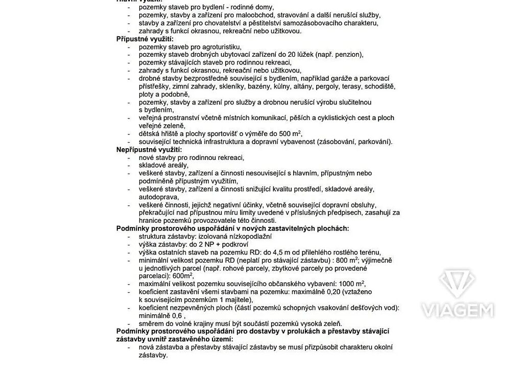 Možnosti využití pozemků jsou dány územní plánem, který předurčuje pozemky pro rekreační zástavbu se specifikací “SV - plochy smíšené obytné - venkovské”.