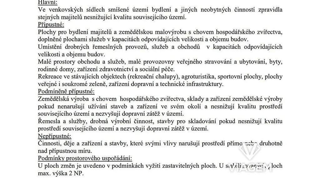 Možnosti využití pozemků jsou dány územní plánem, který předurčuje pozemky pro rekreační zástavbu se specifikací “SV - plochy smíšené venkovské”.