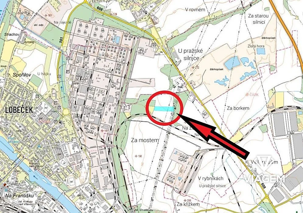 Pozemek se nachází nedaleko pískovny a také rafinerie Orlen Unipetrol, což může předurčovat jeho budoucí spekulační potenciál.
