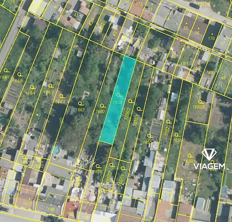 Tento pozemek je zapsán na LV 193 s parcelním číslem 1659 o celkové výměře 255 m2.