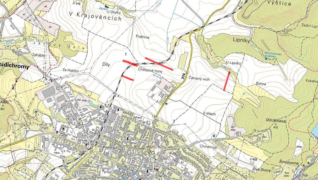 orná půda: parc. č. 4944/73, 5156/388, 5192/35, 5192/65, 5192/82, 5196/111, 5196/117, 6564/81, 6564/86