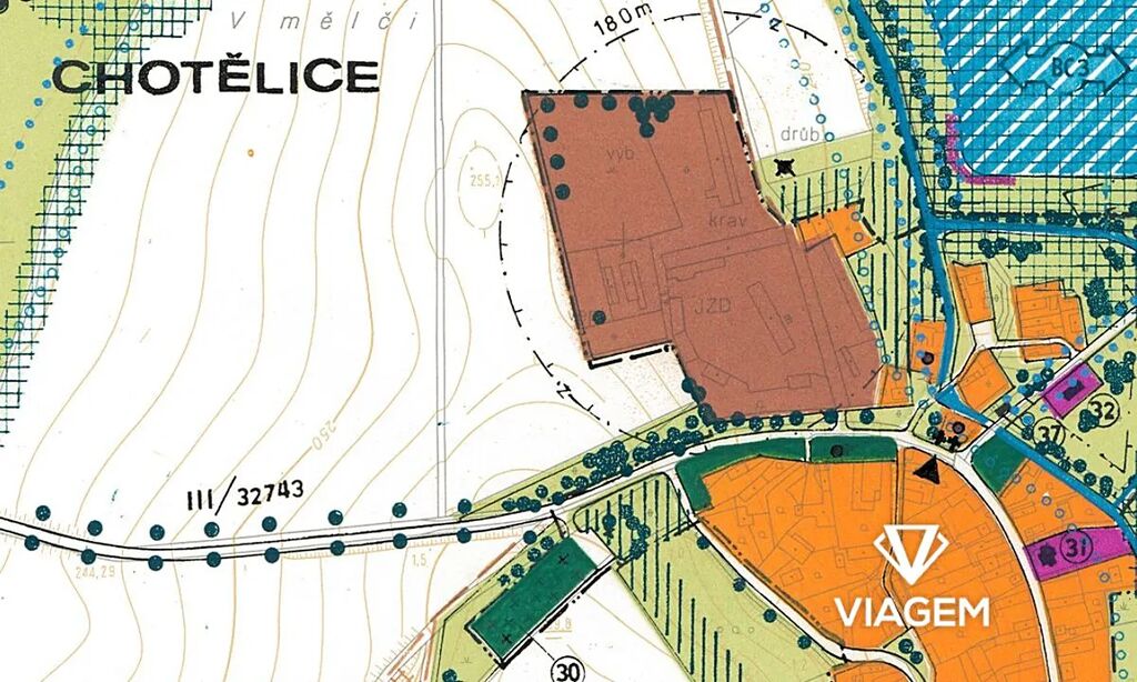 Jedná se o komerční pozemek vedený v katastru jako ostatní a manipulační plocha. V uzemním plánu je vedený jako komerční zóna.