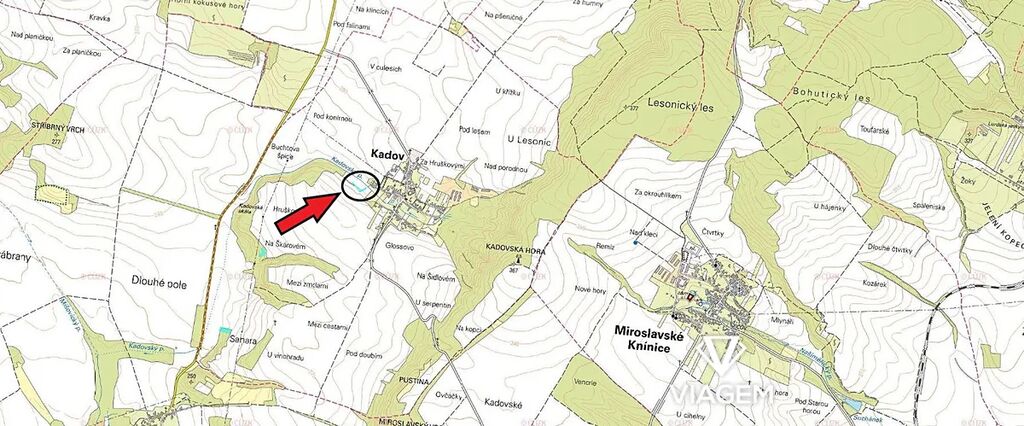 V exkluzivním zastoupení majitele nabízíme pozemek o výměře 1392 metrů čtverečních v klidné okrajové části obce Kadov okres Znojmo Konkrétně: