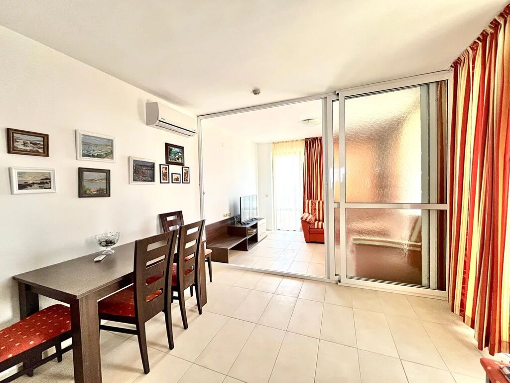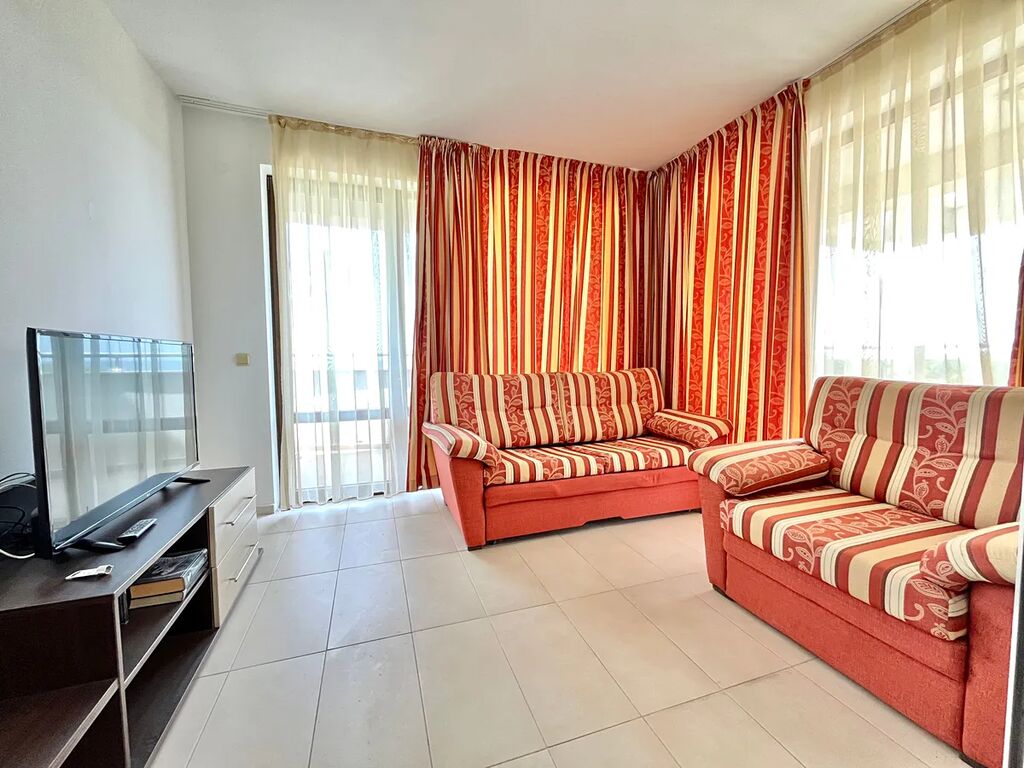 Apartmán o celkové ploše 148,22 m2 včetně společných částí (plocha apartmánu včetně teras 121,86 m2 + společné částí 26,36 m2) je umístěný v 6. podlaží budovy a sestává z chodby, jedné ložnice, jedné koupelny s toaletou, obývacího pokoje s kuchyní a jídelním koutem a dvou velkých teras s výhledem na moře. Apartmány je zařízený veškerým nábytkem, klimatizací, televizi a dalšími spotřebními předměty. Veškerá občanská vybavenost je v místě nebo v blízkém okolí. Do centra Careva, za nákupy nebo zábavou to není pěšky dál než pět minut. Sportovní vyžití, kromě možností v areálu, nabídne především samotné moře, město Carevo s dalšími sportovišti.
