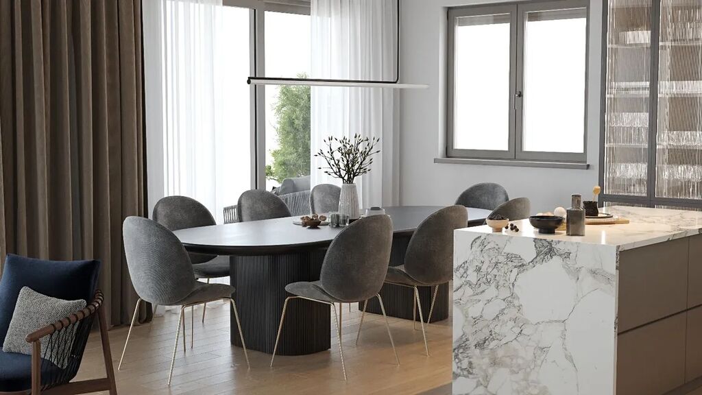 Budova se nachází v pěkné a klidné čtvrti, ideální pro odpočinek a relaxaci, pouhých 400 m od krásné oblázkové pláže. Nastěhování je plánováno na prosinec 2026.