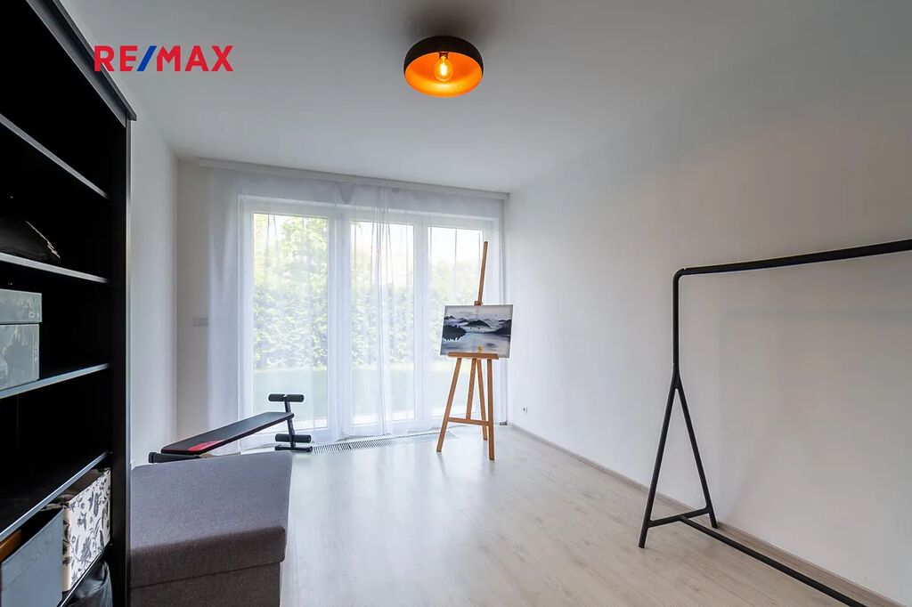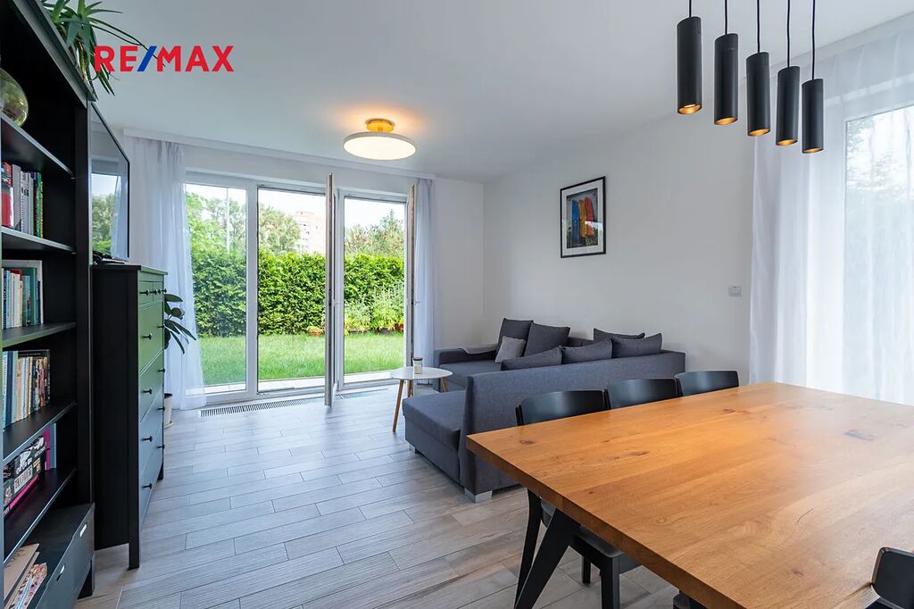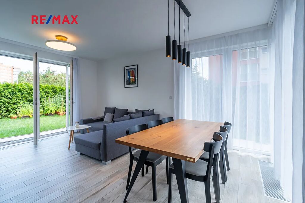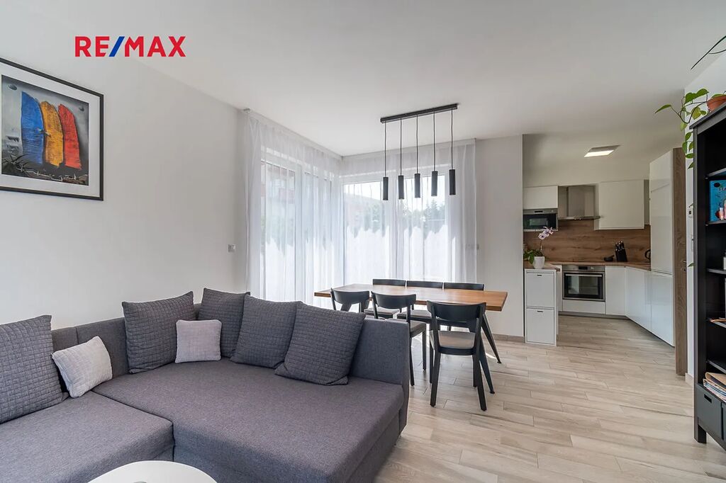 Tento byt nabízí moderní bydlení s výhodou hezké předzahrádky. To alternuje rodinný dům, avšak s minimálními starostmi na údržbu. Snadný přístup k infrastruktuře města, prostě dokonalá kombinace pohodlí v blízkosti služeb a přírody, dostupný do centra Prahy a blízko na D2 a letiště.