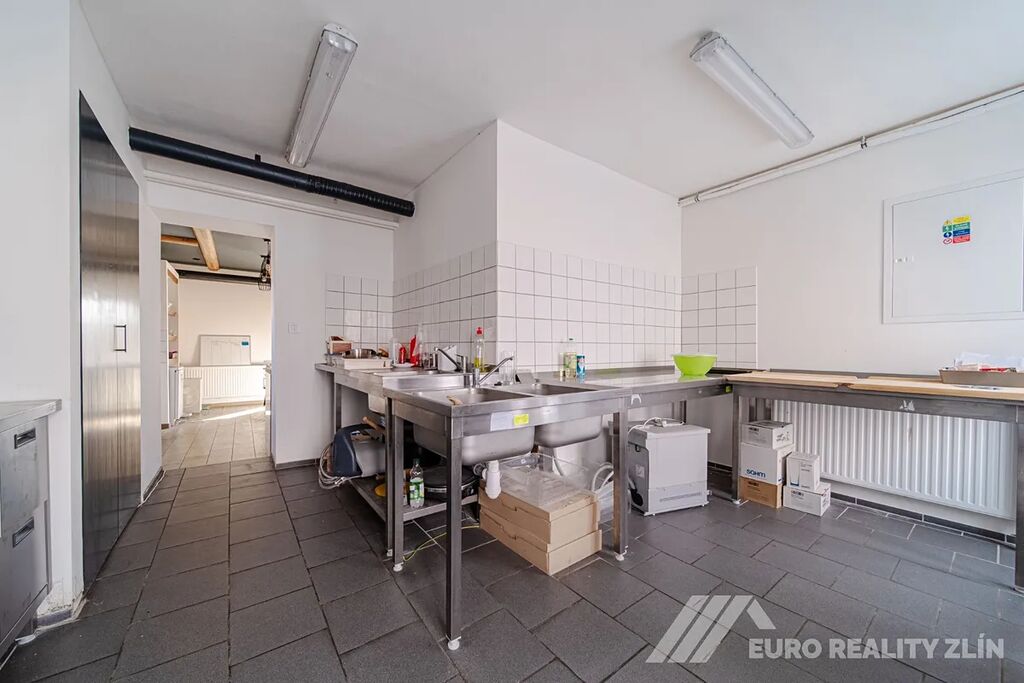 Plně vybaveno pro gastro provoz, včetně sociálního zařízení pro personál i hosty