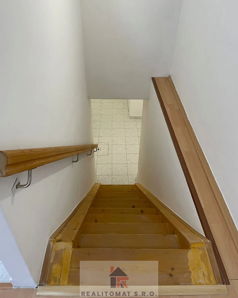 V suterénu najdete prostornou chodbu, koupelnu s rohovou vanou, umyvadlem a samostatné WC s přípojkou na pračku. Dále je zde komora a samostatná ložnice s velkou postelí 180 × 200 cm.