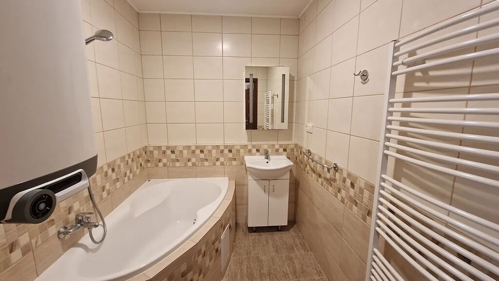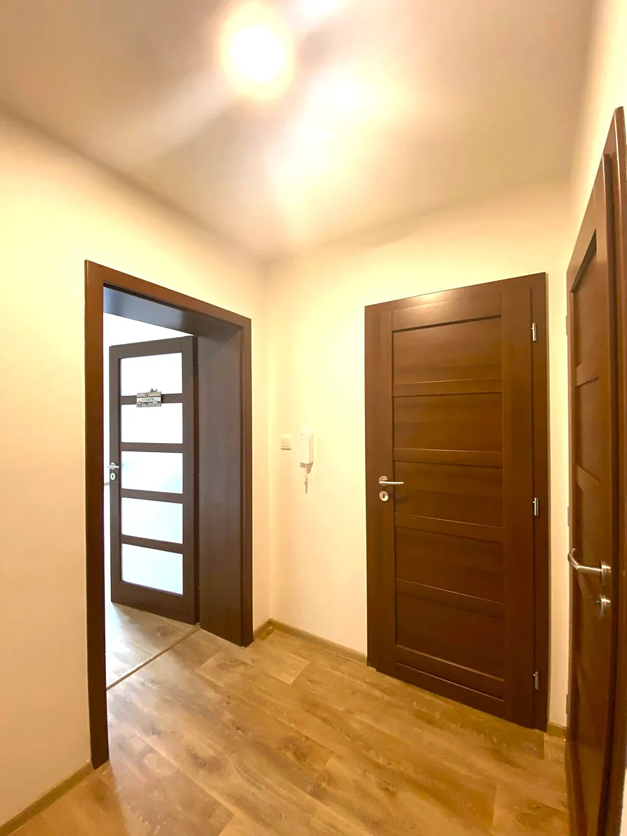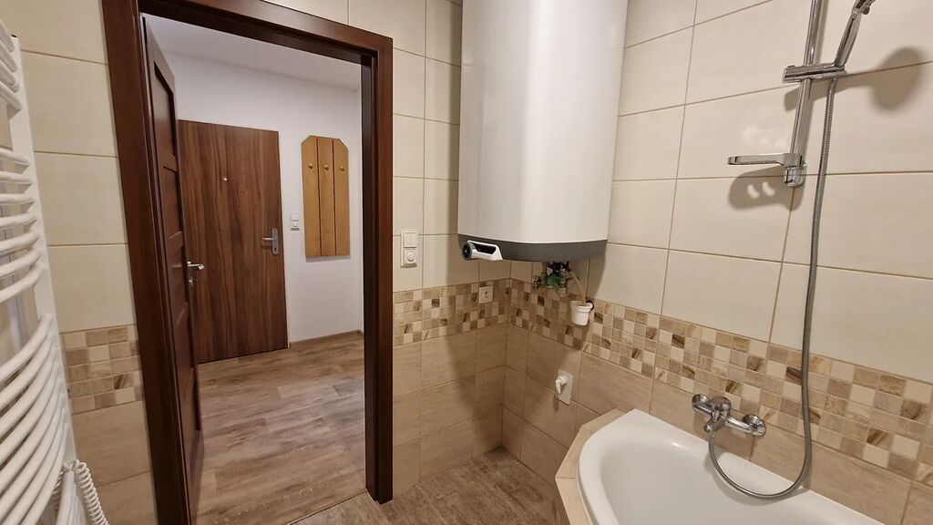 Dispozice bytu : Z prostorné předsíně je vstup do koupelny s rohovou vanou, na toaletu, která je samostatná a také do komory, která může sloužit na odložení např. sezonních věcí.