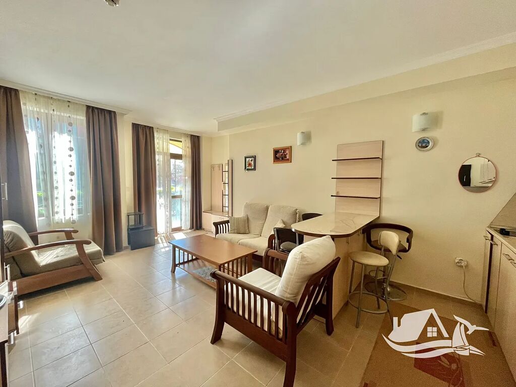 Tento dvoupokojový apartmán se nachází v komplexu Saint George Palace ve vyhledávaném letovisku Sveti Vlas. nabízí harmonii prostoru, světla a středomořského klidu. Oddělená ložnice poskytne soukromí, zatímco prostorný obývací pokoj s kuchyňským koutem zve k odpočinku i k posezení s přáteli. Moderní interiér a svěží atmosféra z něj dělají ideální volbu jak pro rekreaci, tak pro celoroční bydlení.