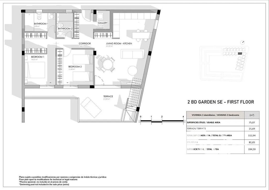 V klidné části pobřežního města Torrevieja vzniká nový rezidenční projekt, který propojuje středomořský styl života s moderní architekturou. Jen 250 metrů od moře se nachází elegantní bungalov o dispozici 3+kk, který nabízí pohodlí, světlo a dostatek prostoru pro každodenní život i letní odpočinek.