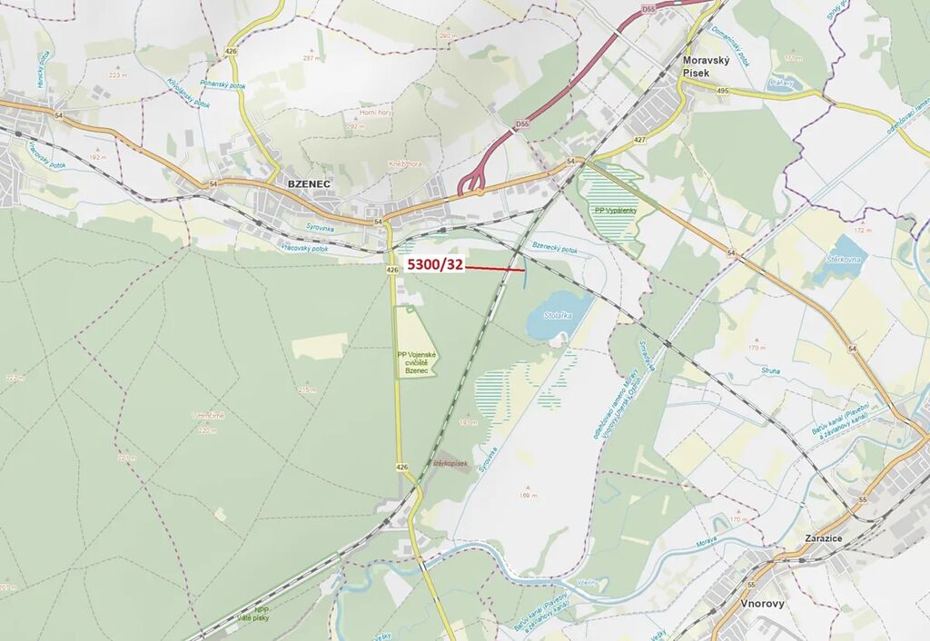 Lesní pozemek o výměře 4949 m2, parcelní číslo 5300/32, podíl 1/1, katastrální území Bzenec, obec Bzenec, obec s rozšířenou působností Kyjov, okres Hodonín, Jihomoravský kraj.