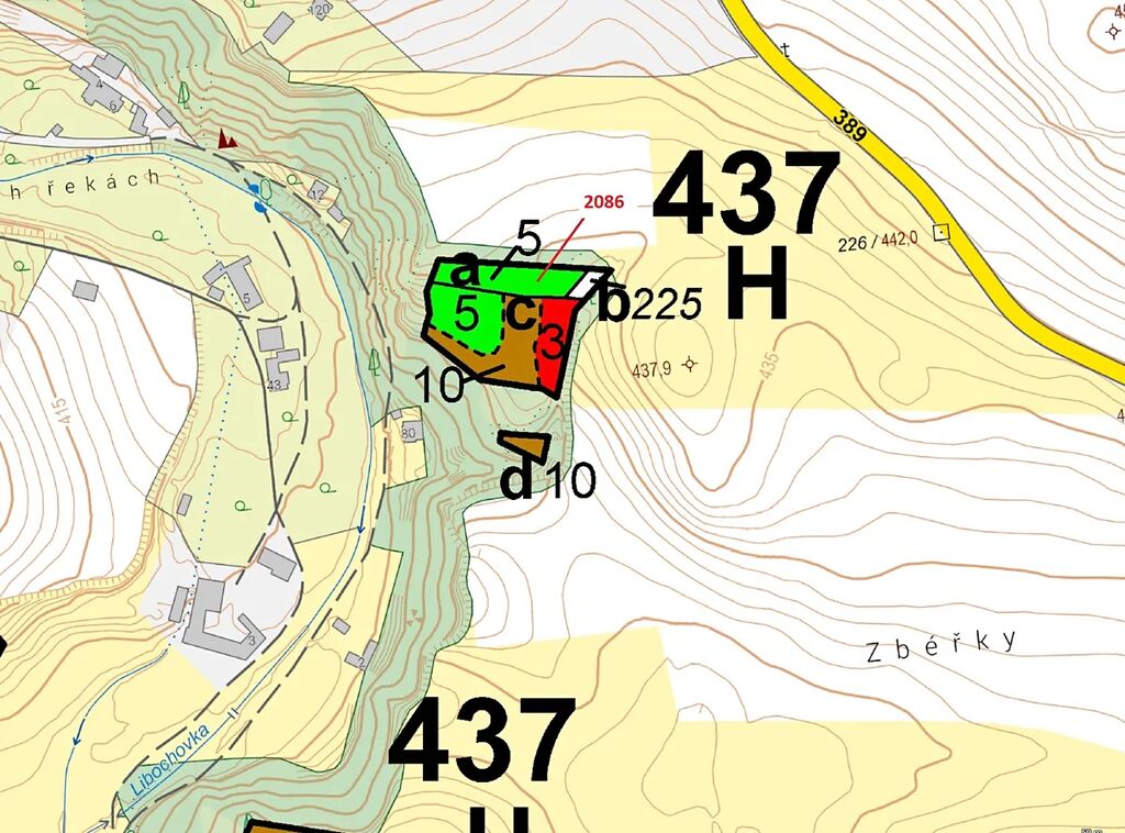 Lesní pozemek o výměře 1861 m2, parcelní číslo 2086, podíl 1/1, katastrální území Žďárec, obec Žďárec, obec s rozšířenou působností Tišnov, okres Brno-venkov, Jihomoravský kraj.