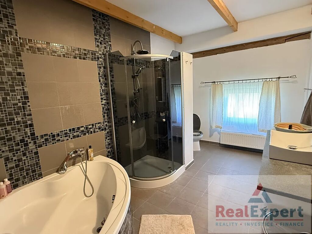 Hostinský / správcovský dům (16 × 8 m, užitná plocha cca 192 m²) nabízí byt 1+1, 2 kotelny na plyn a na pevná paliva, které zajišťují vytápění všech obytných objektů. V patře jsou tři obytné místnosti, částečně podsklepeno.