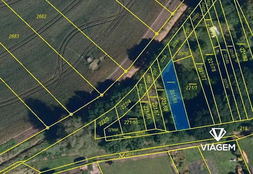 ➡️ Parc. č. 221/69 – 153 m² (podíl 19 m²) – vodní plocha