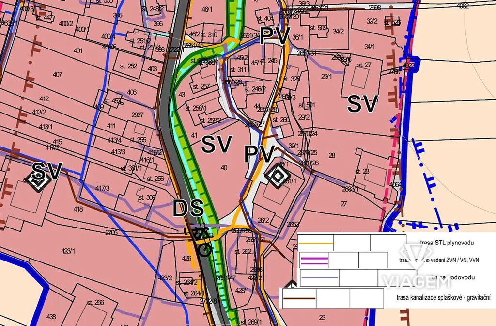 Všechny inženýrské sítě se nachází v blízkém dosahu (plyn, elektřina, vodovod, splašková kanalizace). Pozemek je aktuálně oplocený, nachází se na něm stodola a zpevněná plocha. Na pozemek je přístup zajištěn přes pozemky obce a České republiky.