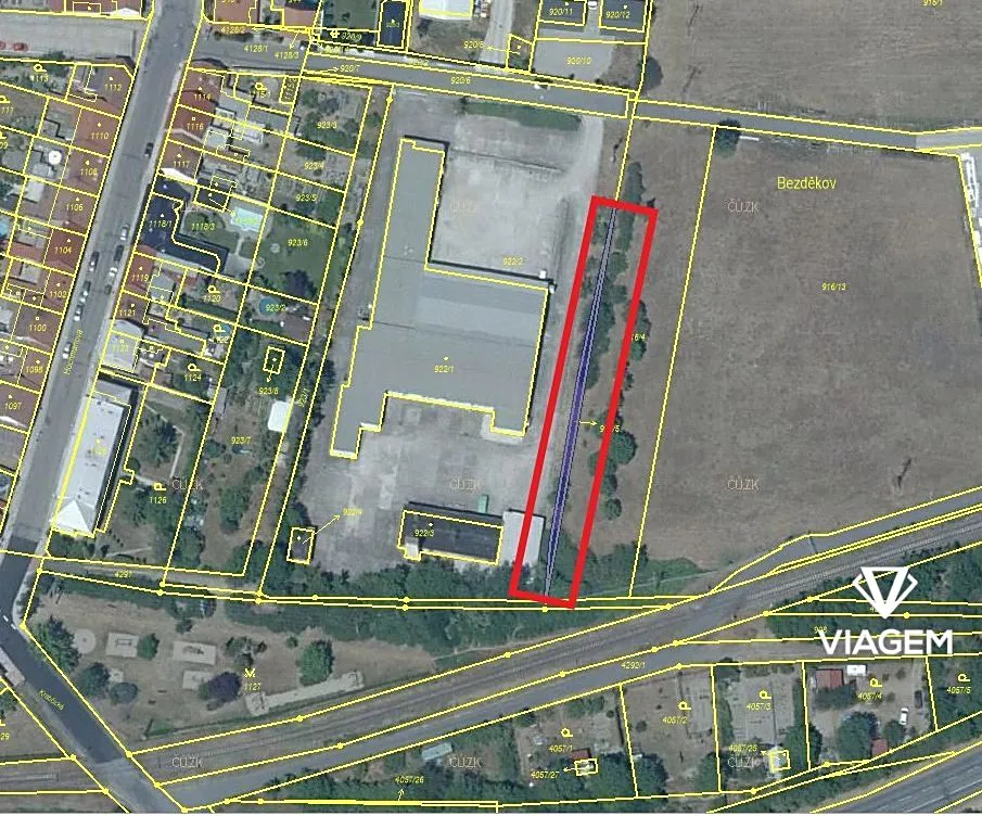 Pozemek se nachází v blízkosti komerčních pozemků a je vedena jako plocha průmyslové výroby a sklady.