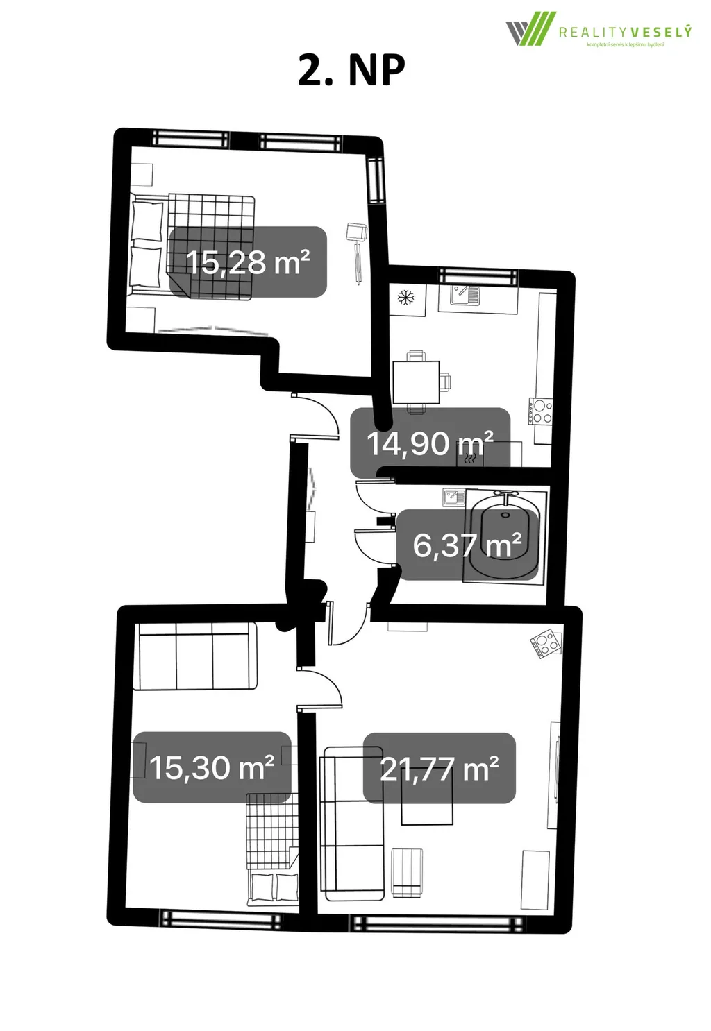 V prostorném podkroví lze vybudovat další bytovou jednotku.