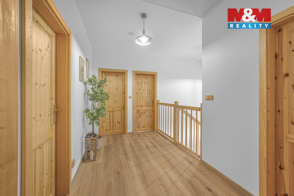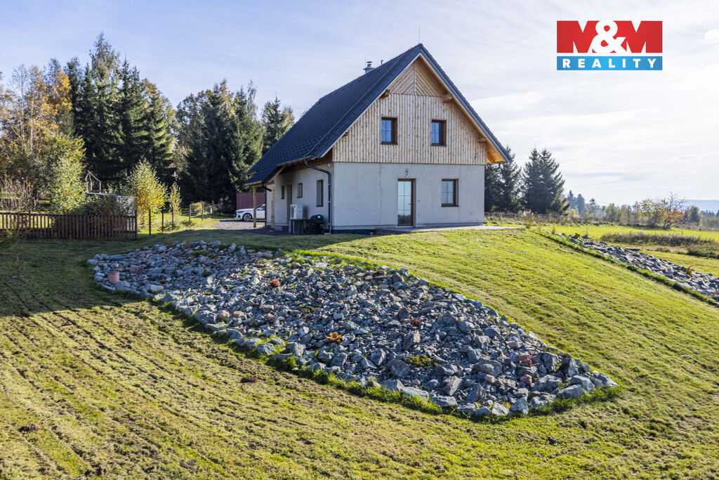 Nabízíme k prodeji stylovou horskou chalupu kolaudovanou jako rodinný dům o dispozici 5+kk, situovanou v klidné části obce Bělá u Liberka. Dům o užitné ploše 142 m² je novostavbou se dvěma nadzemními podlažími. Na pozemku o rozloze 3835 m² naleznete zpevněné parkování a dostatek prostoru pro odpočinek. V domě jsou dvě koupelny, jedna s vanou a druhá se sprchovým koutem. Podlahy jsou vinylové s podlahovým vytápěním, které je zajištěno tepelným čerpadlem a kachlovými kamny s výměníkem. Nemovitost je vybavena moderní kuchyňskou linkou se všemi spotřebiči. Technická místnost je vybavena akumulační nádrží, elektrický bojlerem a úpravnu pitné vody. Voda je zajištěna z vrtné studny, odpadní vody jsou řešeny biologickou čistírnou. Okna plastová s trojskly a sítěmi proti hmyzu. Dům je kompletně zateplený a čeká na finální nátěr fasády podle vkusu nového majitele. Ski areály Říčky a Zdobnice vzdálené 16 minut autem. Více informací u makléře.