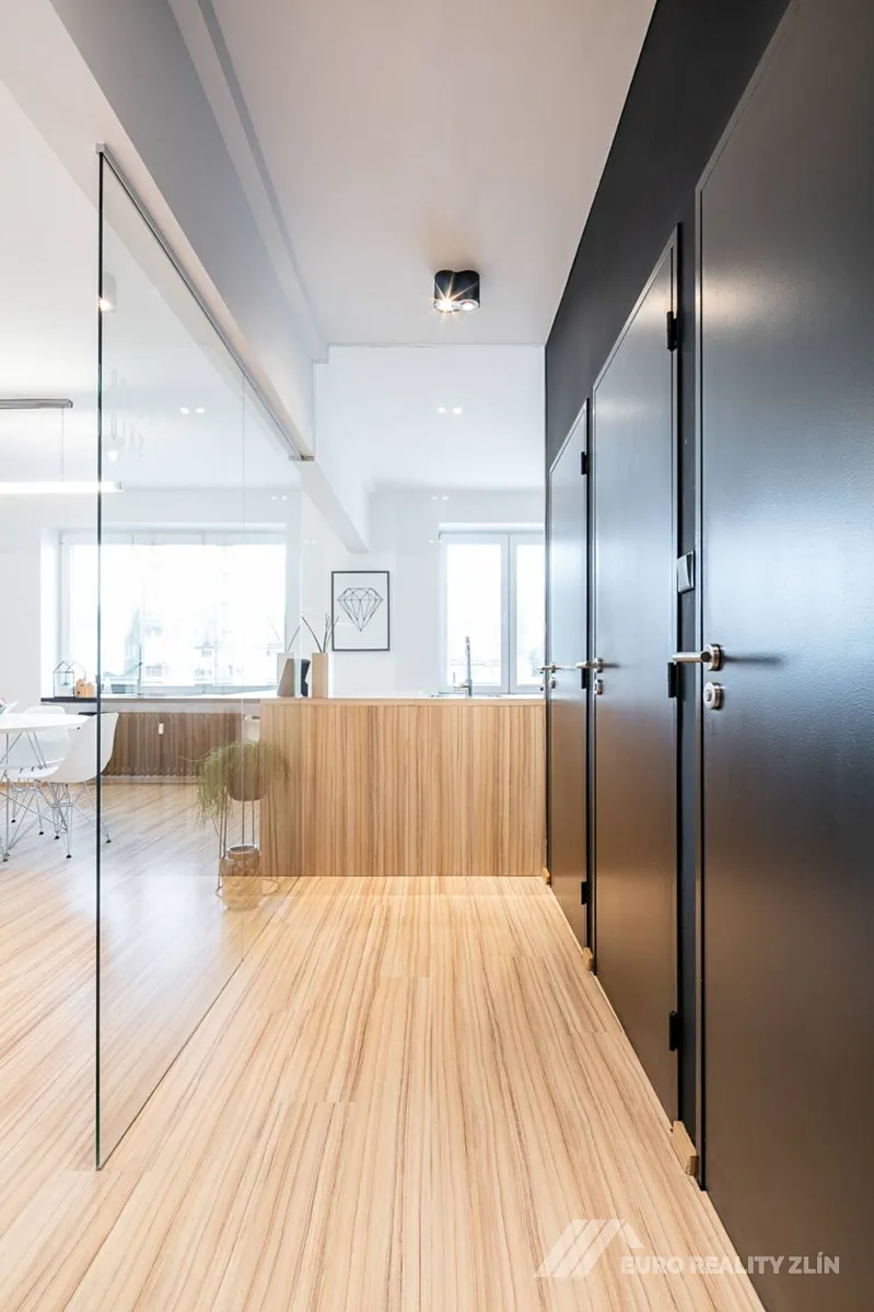 Nabízíme exkluzivní pronájem prostorného a nadstandardního bytu 2+kk o velikosti 73 m², který se nachází v posledním patře bytového domu přímo v centru Zlína, na ulici Sadová.