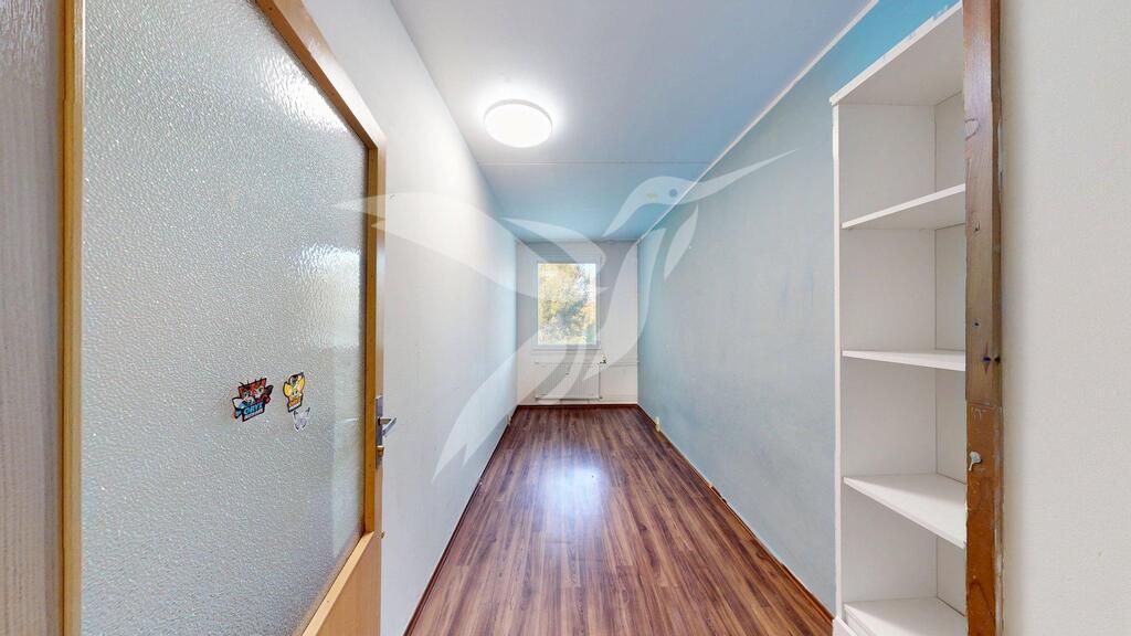 Nemovitost o velikosti 69 m2 se nachází ve 3.NP panelového bytového domu s výtahem a skládá se z předsíně, 2x samostatného pokoje, pokoje včetně kuchyňské linky, samostatného pokoje s lodžií, koupelny, toalety a k bytu náleží i sklepní kóje situována v suterénu domu. Byt se pronajímá jako zařízený a jeho součásti je kuchyňská linka se spotřebiči (elektrický sporák + digestoř), dále jídelní set, komody a skříně na úložný prostor, obývací stěna, sedací souprava a další. Vytápění a ohřev vody je zajištěn dálkovými dodávkami.