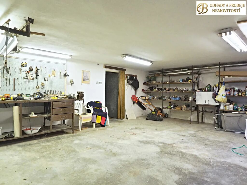 Suterén: Světlý prostor, který aktuálně slouží jako garáž, dílna, sklad a úložné prostory. Díky své rozmanitosti jej lze upravit na samostatné pokoje, pracovnu, hernu pro děti nebo relaxační zónu.