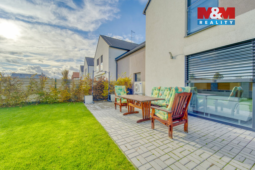 Součástí pozemku o rozloze 381 m² je retenční nádrž o objemu 5 m³ se systémem samo zavlažování, což ocení především milovníci zahradničení. Tepelné čerpadlo zajišťuje ekonomické vytápění i ohřev vody a významně tak snižuje provozní náklady. Nemovitost je napojena na veřejnou kanalizaci a vodovod.