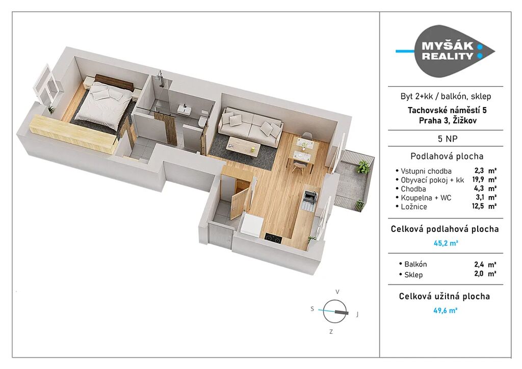 Nabízíme k pronájmu velmi pěkný byt 2+kk (45 m2) s balkonem (3 m2), umístěný ve 3. patře kompletně zrekonstruovaného domu na revitalizovaném Tachovském náměstí. Samotný byt prošel rovněž celkovou rekonstrukcí, při které byl kladen důraz na kvalitu materiálů i detaily.