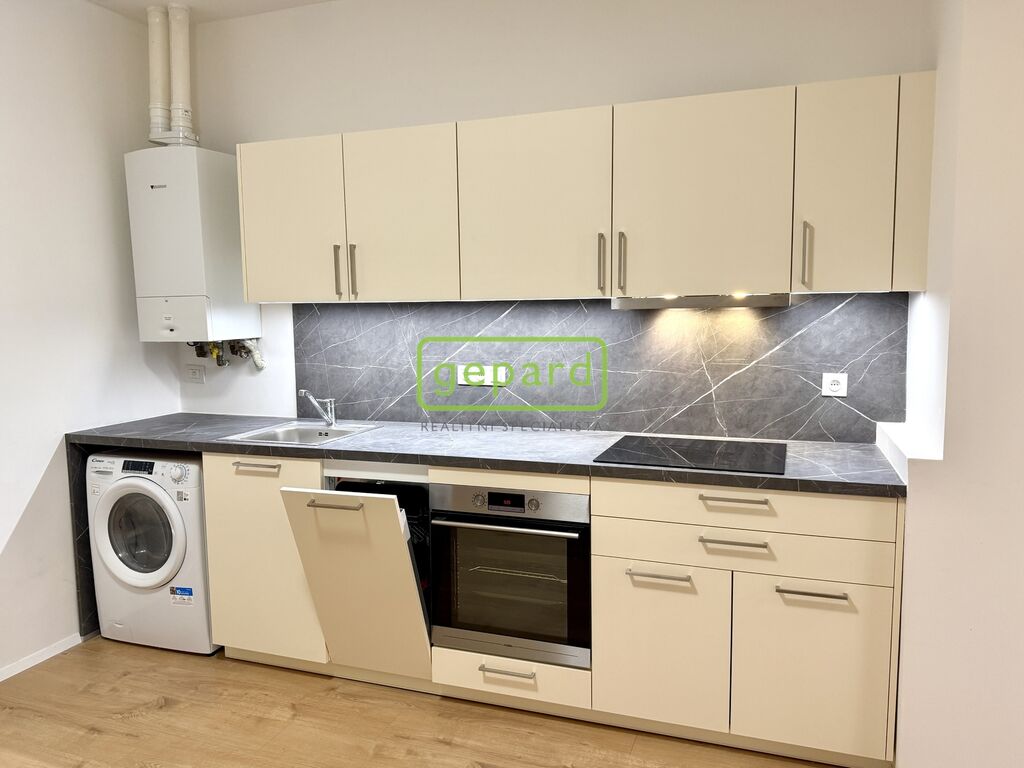 Byt prošel kompletní rekonstrukcí – najdete zde nové podlahy, moderní kuchyňskou linku vybavenou vestavěnými spotřebiči (varná deska, pečicí trouba, digestoř, myčka, pračka) a koupelnu s kvalitním zázemím. Vytápění a ohřev vody zajišťuje plynový kondenzační kotel. Díky vysokým stropům působí interiér vzdušně a komfortně.