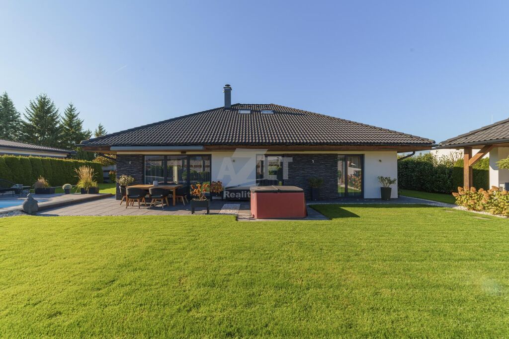 Venkovní prostor je vybaven LED osvětlením s pohybovými čidly a dům je chráněn kamerovým systémem ovládaným prostřednictvím mobilní aplikace.