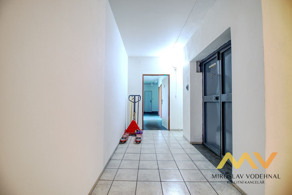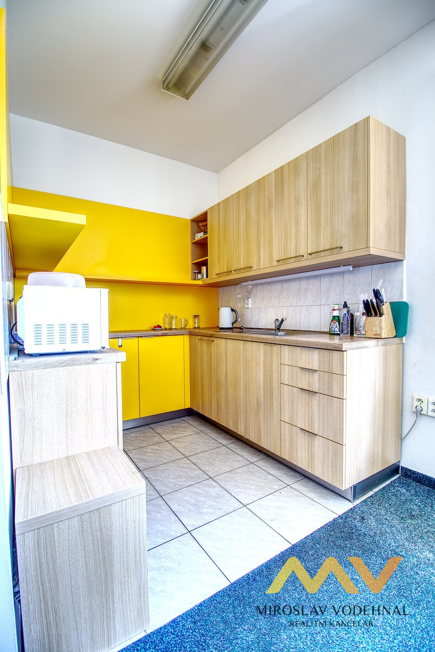 Jedná se o prostory se skladovou částí v přízemí o rozloze 200 m2 a kancelářskými prostorami v patře budovy 100 m2, kde je k využití výtah o nosnosti 800 kg. Nebytový prostor v patře nabízí 3 prostorné kanceláře, kuchyňku se zázemím, šatnu (komoru), chodbu. Ve skladové části v přízemí je otevřený sklad, komora a sociální zařízení. Pro snadnou manipulaci s materiálem slouží sekční vrata. Nosnost podlahy ve skladu 1400 kg/m2.