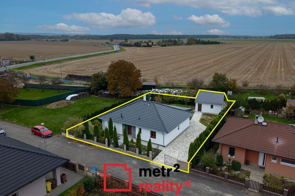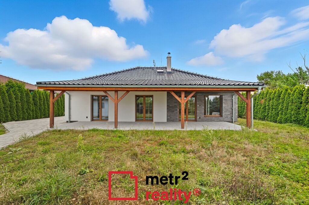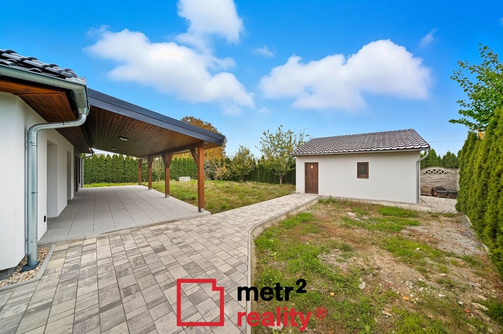 Ve výhradním zastoupení majitele si Vám dovolujeme nabídnout nadstandardní novostavbu přízemního rodinného domu v obci Štěpánov u Olomouce. Jedná se o zděnný dům o dispozici 5+kk, jehož součástí je nadstandardní zastřešná terasa o výměře 45,5 m2. Dům má zastavěnou plochu 137 m2 a dispozičně je velmi dobře vyřešen. Nachází se zde prostorná vstupní chodba z níž vedou dveře do techniké místnosti, kde se nachází kotel, přípojka na pračku a sušičku a může sloužit jako úklidová místnost či šatna. Dále se dostáváme do slunného obývacího pokoje propojeného s kuchyní s novou kuchyňskou linkou na míru vč. vestavěných spotřebičů. V obývacím pokoji je klimatizace a taktéž komín, který umožňuje připojení na krbová kamna. Francouzským oknem se dostanete na niž zmíněnou zastřešenou terasu. Z prostorné chodby jsou pak jednotlivé vstupy do tří ložnic, dvě jsou orientované do zahrady a taktéž se z nich dostanete na terasu. Jedna ložnice je pak orientovaná do ulice a má svoji samostanou koupelnu s WC. Další samostatná koupelna se pan nachází na konci chodby a je v ní jak vana, tak sprchový kout. V celém domě je udělaný vestavěný nábytek na míru, na zdech jsou nové stěrky. V pokojích jsou pak sádrokartonové podhledy s led osvětlením. V domě je podlahové vytápění, které zajišťuje plynový, kondenzační kotel, ale je zde příprava na tepelné čerpadlo a fotovoltaiku. Samozřejmostí je napojení na obecní vodovod a kanalizaci, na pozemku ja navíc studna na užitkovou vodu. Dům je zateplen, střecha je sedlová s pátelnou taškou. Vedle domu je velká zpevněná plocha na zaparkování minimálně dvou automobilů, vjezd na pozemek je přes bránu na dálkové ovládání. V zadní části pozemku se pak nachází zděný domek o zastavěné ploše 25 m2, který může sloužit jako dílna, či zahradní domek na nářadí. Pozemek je kompletně oplocen a osázen živým plotem. Dům se nachází na kraji obce, ve slepé, velmi klidné ulici a toto umístění zajišťuje obyvatelům domu maximální klid a soukromí. V obci se nachází veškerá občanská vybavenost a je velmi dobře sjízdná do Olomouce (15 minut autem). Dům jako takový nevyžaduje žádnou další investici, vyjma zahrady, která ještě není dodělána. Pro předtavu se můžete podívat na fotografie již hotové zahrady, které jsou v závěru galerie. Aktuálně zpracováváme průkaz energetické náročnosti a proto je dům zatím inzerován v třídě G.