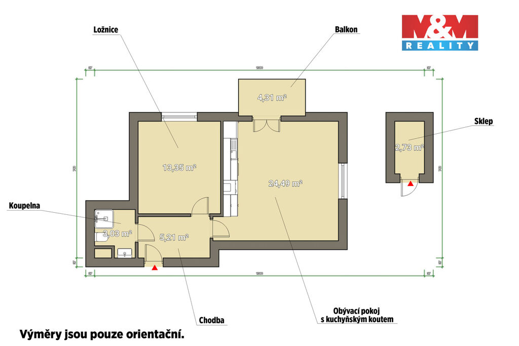 Okolí nabízí skvělou dostupnost – pár minut pěšky zastávka tramvaje č. 2, obchody a za domem louky a pole pro odpočinek v přírodě. Ideální volba pro jednotlivce nebo pár.