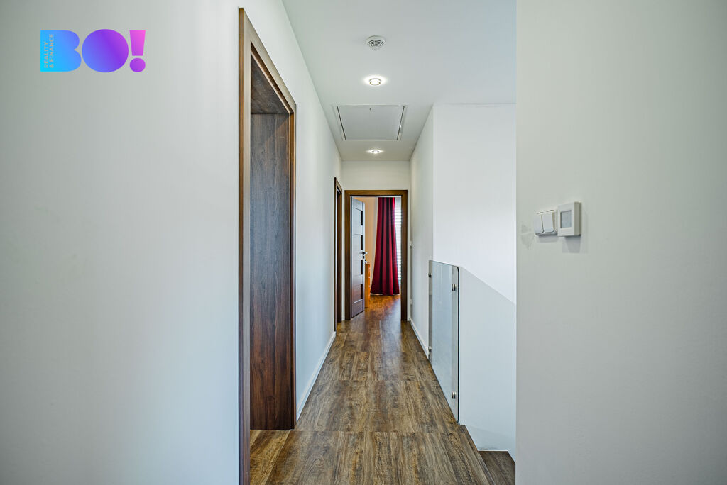 Vytápění je elektrické podlahové. Ohřev vody mimořádně úsporný bojlerem se zabudovaným tepelným čerpadlem. V domě aktivní systém rekuperace s ohřevem vzduchu. Na většině oken nainstalovány venkovní žaluzie - polohovatelné. Na střeše fotovoltaika o výkonu 4 kWp s možností navýšení o další panely.
