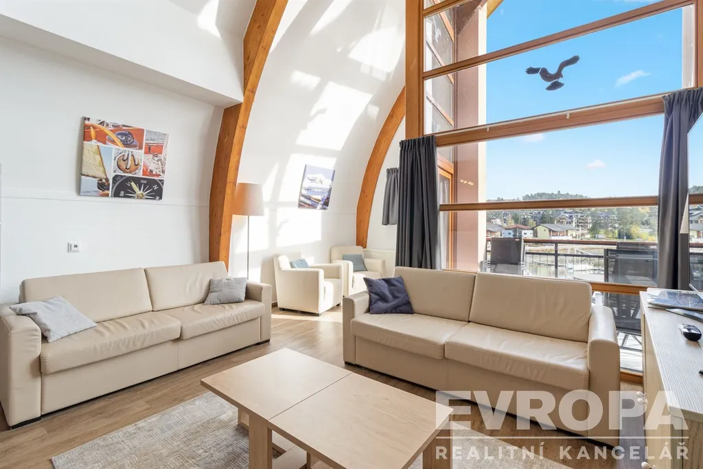 Nabízíme k prodeji mezonetový apartmán 4+kk s prostorným balkonem a jedinečným výhledem na hladinu Lipna. Apartmán je součástí prestižního projektu Marina Lipno Resort, který se nachází přímo v centru Lipna nad Vltavou a patří mezi nejznámější a nejlépe hodnocené rezidenční areály v této oblasti. Kombinuje vysoký standard, promyšlenou dispozici a polohu v bezprostřední blízkosti vody.