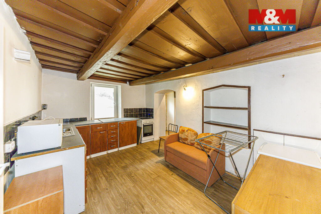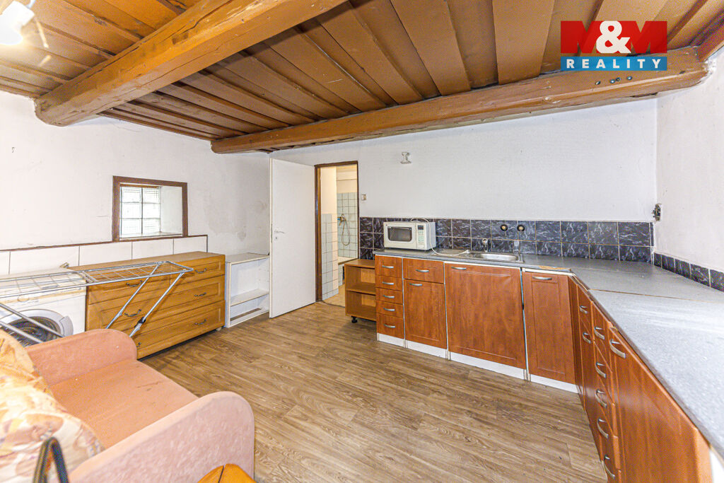 Ze stodoly a půdního prostoru lze vybudovat další obytné místnosti – ideální pro rozšíření bydlení podle vlastních představ.