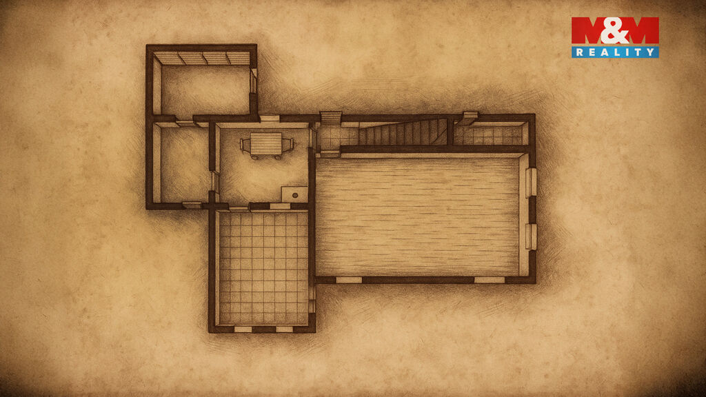 Nabízí 211 m² užitné plochy, osm místností, garáž, dílnu, sklep i půdu, kde lze rozšířit obytný prostor.